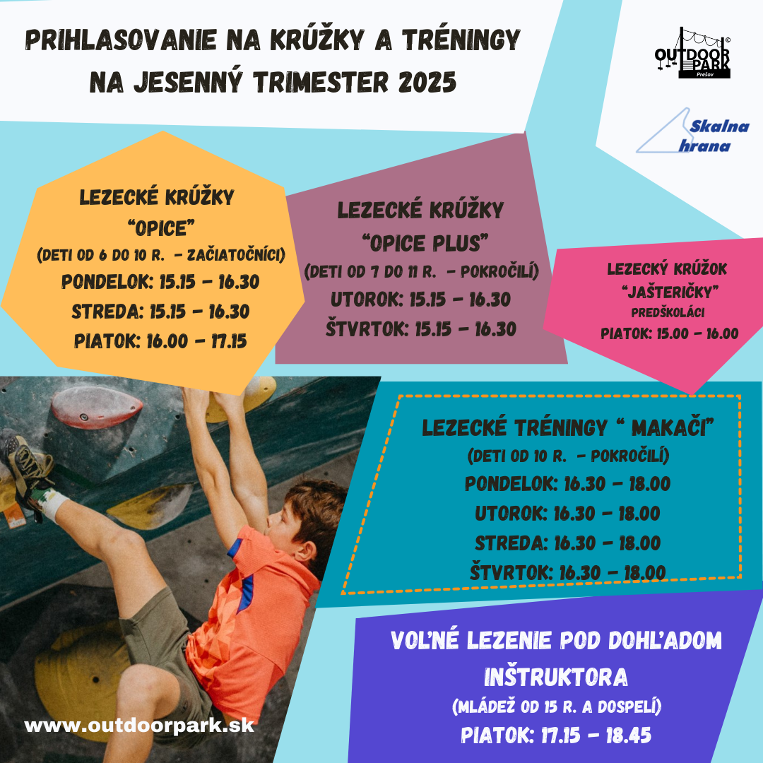 V septembri (so začiatkom 16.09. 2025) štartujeme nový trimester našich krúžkov a tréningov v týchto kategóriách: